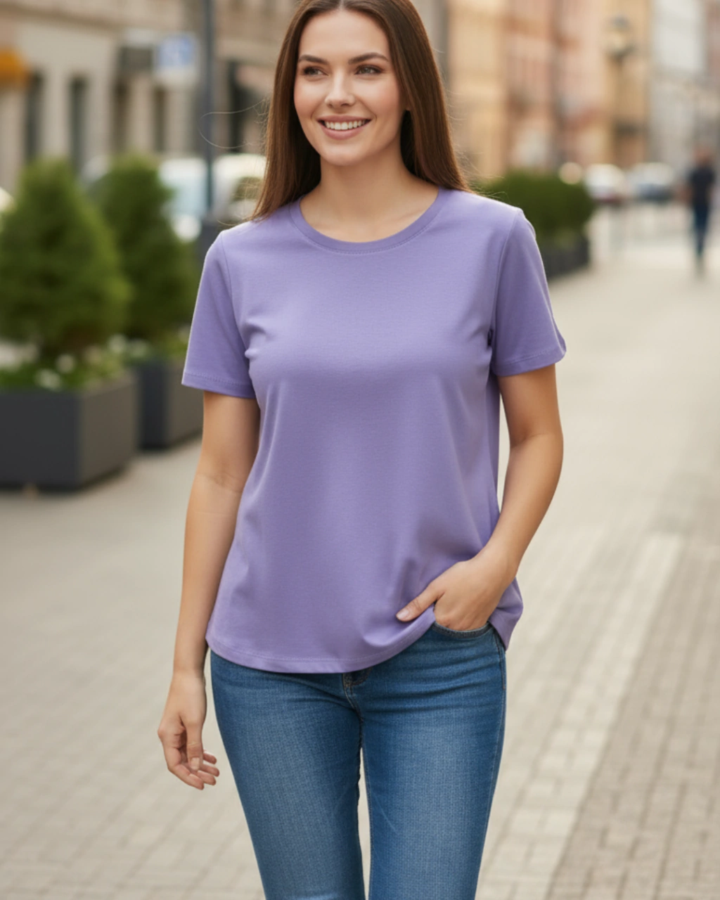 Esta es la remera básica de mujer — bien hecha, con el calce y la suavidad que buscás.